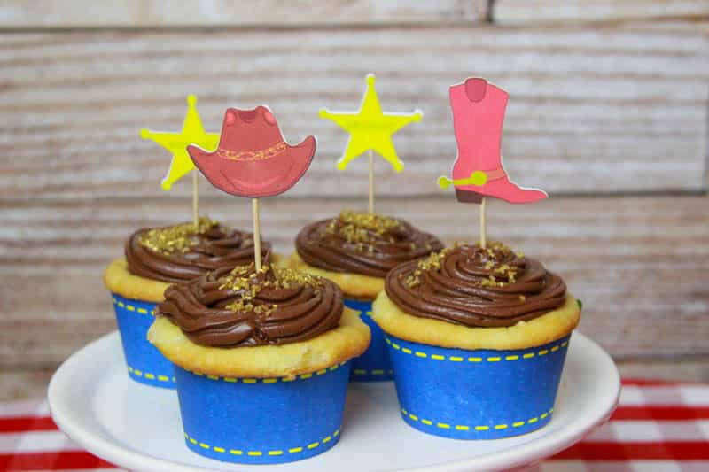 Kein Cowboy ohne Jeans! Einfach ausdrucken, ausschneiden, Enden zusammenkleben und damit die Cupcakes dekorieren.